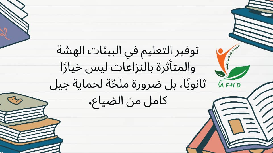 توفير التعليم في البيئات الهشة والمتأثرة بالنزاعات ليس خيارًا ثانويًا، بل ضرورة ملحّة لحماية جيل كامل من الضياع.