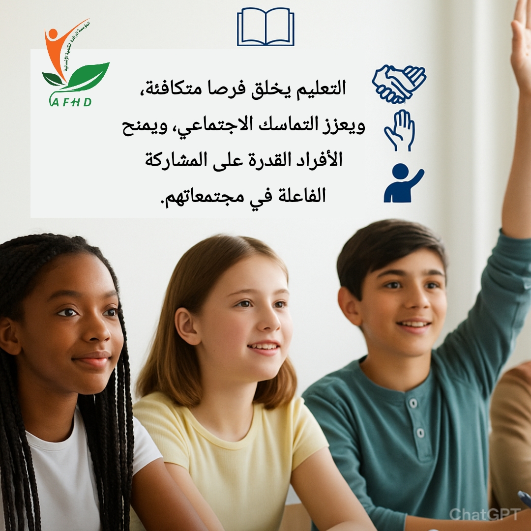 التعليم يخلق فرصًا متكافئة، ويعزز التماسك الاجتماعي، ويمنح الأفراد القدرة على المشاركة الفاعلة في مجتمعاتهم.